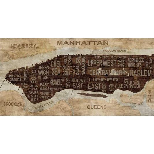 Manhattan Neighborhoods Black Modern Wood Framed Art Print by Wilson, Luke