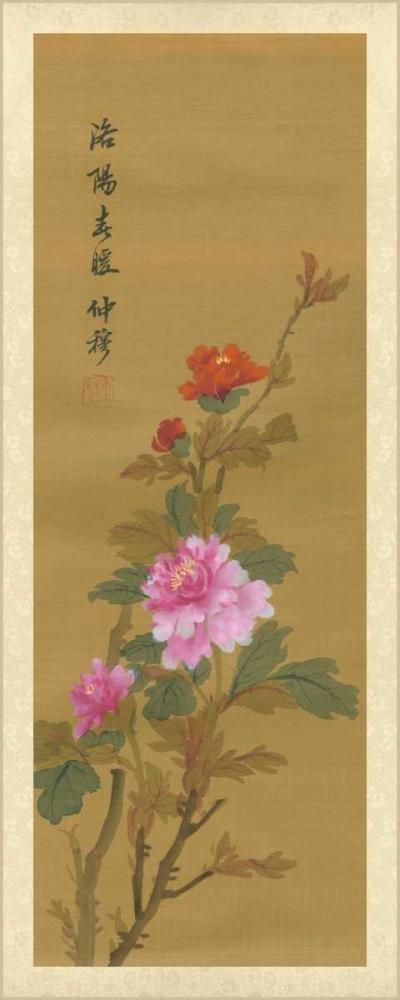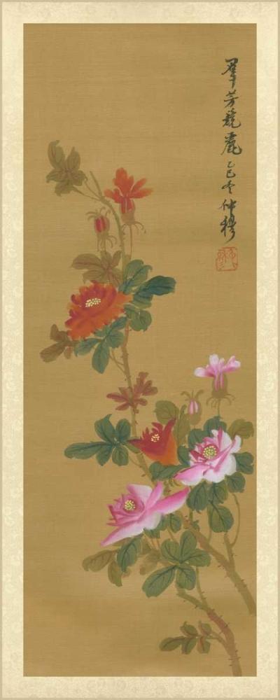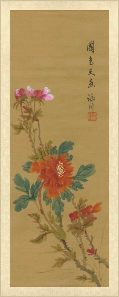 Oriental Floral Scroll II White Modern Wood Framed Art Print with Double Matting by Unknown