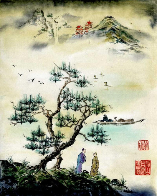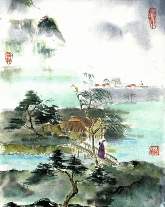 Having Visited Qui Baishi White Modern Wood Framed Art Print with Double Matting by Rae, Nan
