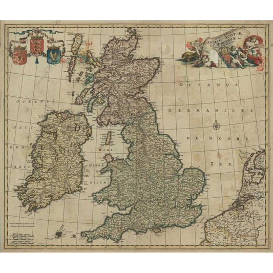 Angliae, Scotiae, Hiberniae Black Modern Wood Framed Art Print by De Wit, Frederick