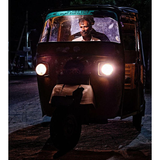 Tuk Tuk DrIVer Black Modern Wood Framed Art Print by Avila, Fernando