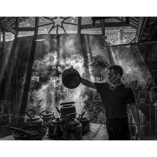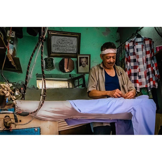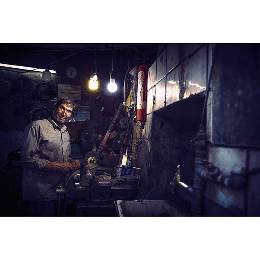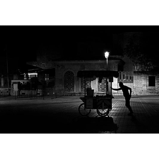 Night Worker In Teheran Black Modern Wood Framed Art Print by Tagliarino, Marco
