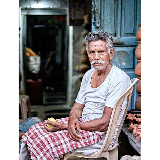 Man Filling A Pitcher With Water In The Streets Of Bangladesh. Black Modern Wood Framed Art Print by Inazio Kuesta, Joxe
