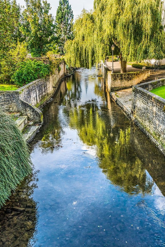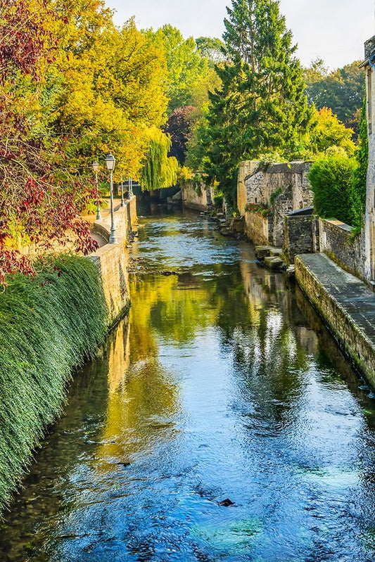 Colorful old buildings- Park Aure River reflection- Bayeux- Normandy- France Black Modern Wood Framed Art Print by Perry, William