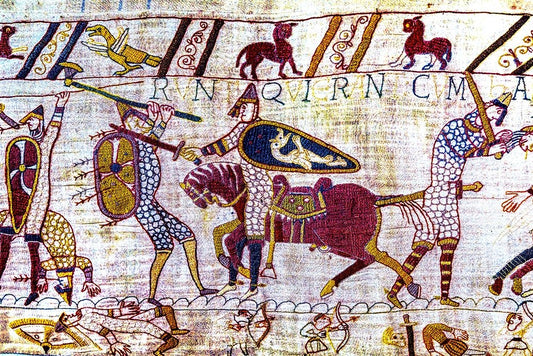 Colorful Medieval Bayeux tapestry- Bayeux- Normandy- France Black Modern Wood Framed Art Print by Perry, William