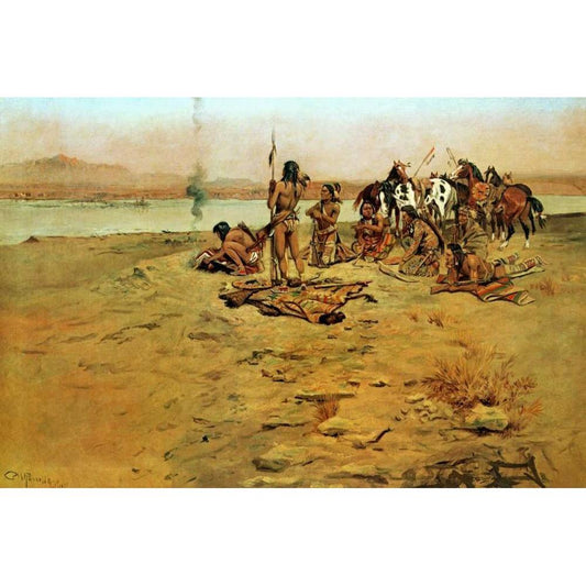 The Signal Fire Black Modern Wood Framed Art Print by Russell, Charles M.