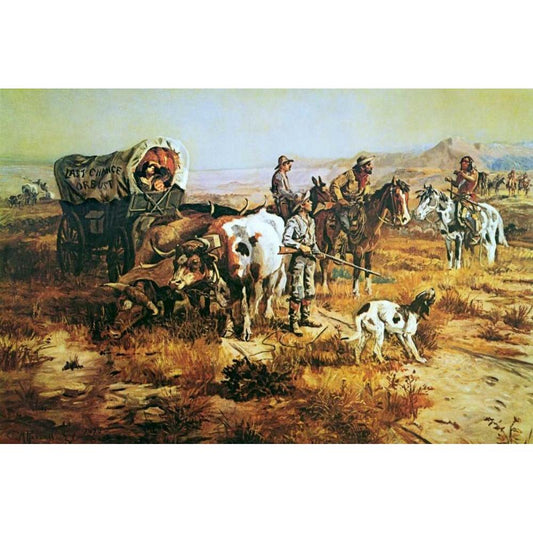A Doubtful Visitor Black Modern Wood Framed Art Print by Russell, Charles M.
