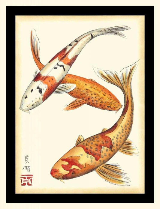 Koi Fish on Black II White Modern Wood Framed Art Print with Double Matting by Zarris, Chariklia