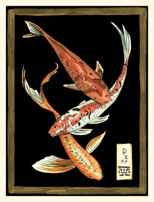 Tres Koi I White Modern Wood Framed Art Print with Double Matting by OToole, Tim