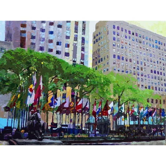 View of New York City Black Modern Wood Framed Art Print by Ghanooni, Sarah