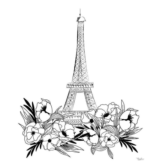 Eiffel Floral Black Modern Wood Framed Art Print by Louise, Gigi