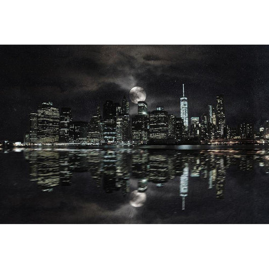 Full Moon NYC Black Modern Wood Framed Art Print by Prime, Marcus