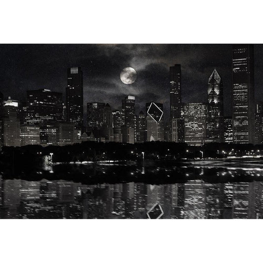 Full Moon Chicago Black Modern Wood Framed Art Print by Prime, Marcus