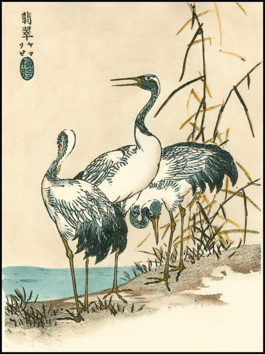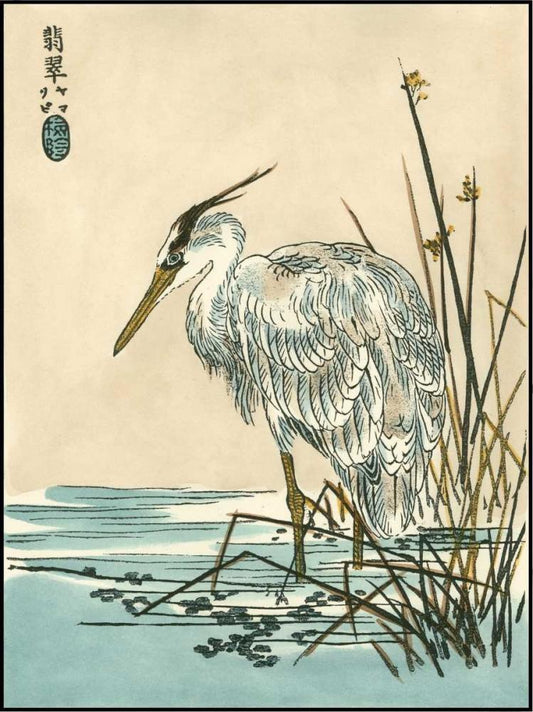 Oriental Crane I White Modern Wood Framed Art Print with Double Matting by Vision Studio