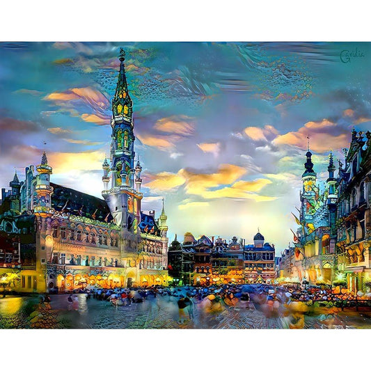 Brussels Belgium Night Black Modern Wood Framed Art Print by Gavidia, Pedro