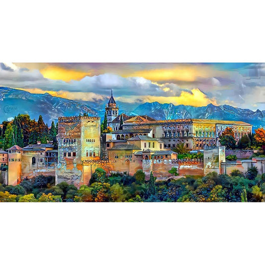Granada Spain La Alhambra Black Modern Wood Framed Art Print by Gavidia, Pedro