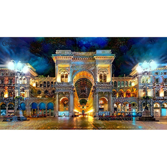 Milan Italy Vitorio Emanuel II Night 2022 Black Modern Wood Framed Art Print by Gavidia, Pedro
