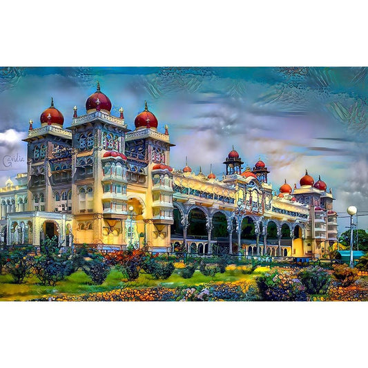 Mysore India Royal Palace Black Modern Wood Framed Art Print by Gavidia, Pedro