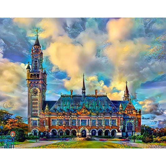 The Hague Netherlands Peace Palace Black Modern Wood Framed Art Print by Gavidia, Pedro