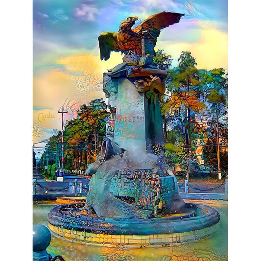 Toluca Mexio Fountain Eagle-Firmado Black Modern Wood Framed Art Print by Gavidia, Pedro