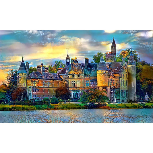 Antwerp Belgium Bornhem Castle Black Modern Wood Framed Art Print by Gavidia, Pedro
