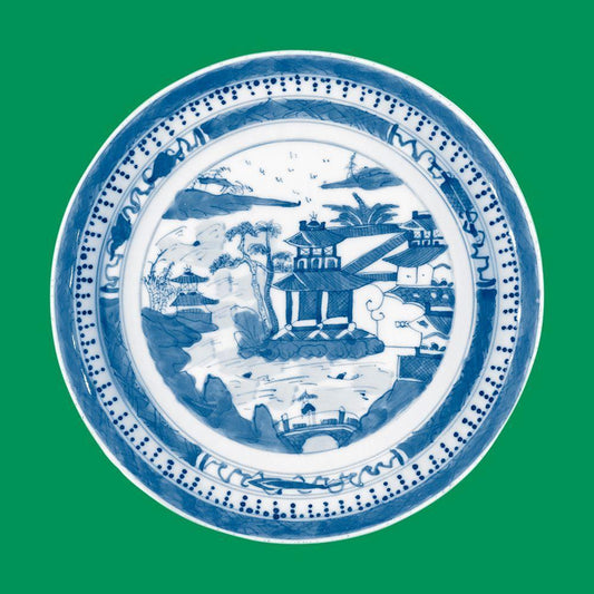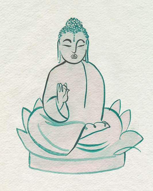 Blue Pagoda on Green I White Modern Wood Framed Art Print with Double Matting by Vision Studio