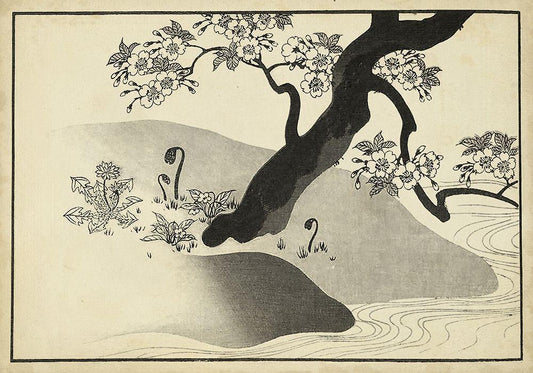 Japanese Cherry Blossom Tree A White Modern Wood Framed Art Print with Double Matting by Unknown