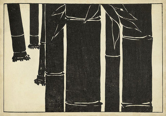 Japanese Bamboo A White Modern Wood Framed Art Print with Double Matting by Unknown