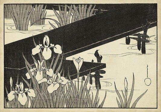 Japanese Irises A White Modern Wood Framed Art Print with Double Matting by Unknown