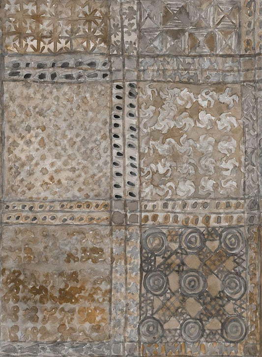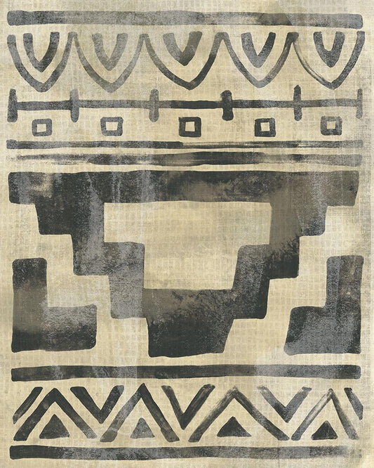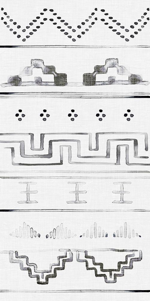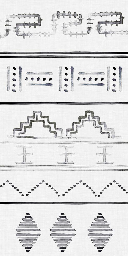 Aged Adinkra Cloth II White Modern Wood Framed Art Print with Double Matting by Dixon, Samuel