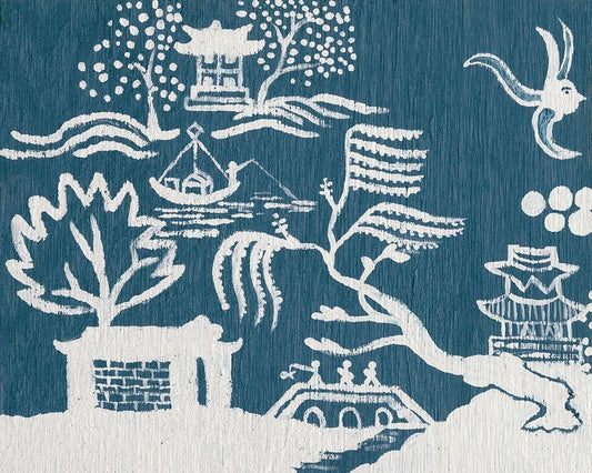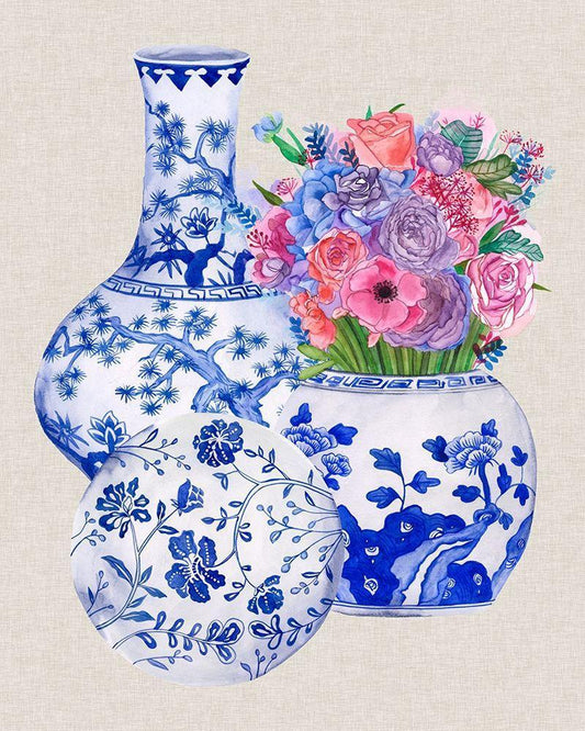 Delft Blue Vases II White Modern Wood Framed Art Print with Double Matting by Wang, Melissa
