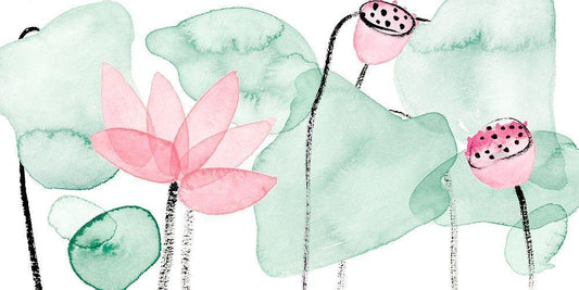 Pink Water Lilies I White Modern Wood Framed Art Print with Double Matting by Wang, Melissa
