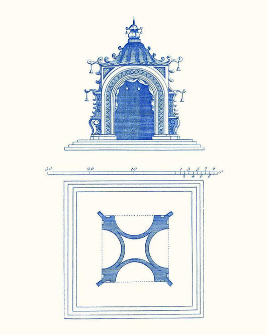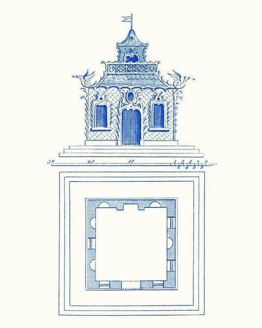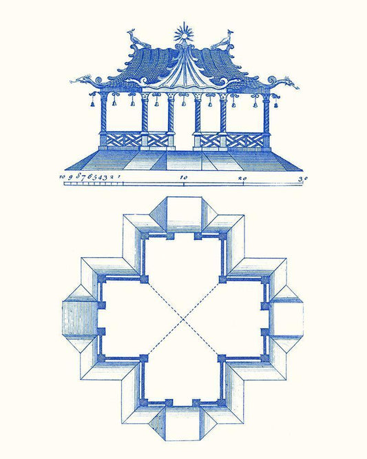 Pagoda Design I White Modern Wood Framed Art Print with Double Matting by Vision Studio