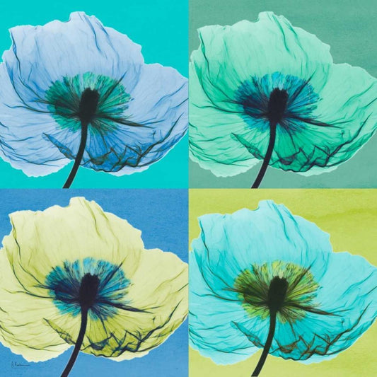 Blue Green Flowers 2 Black Ornate Wood Framed Art Print with Double Matting by Koetsier, Albert