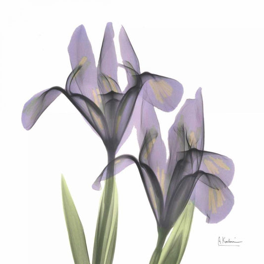 Twin Lilies on Pale Green Black Ornate Wood Framed Art Print with Double Matting by Koetsier, Albert