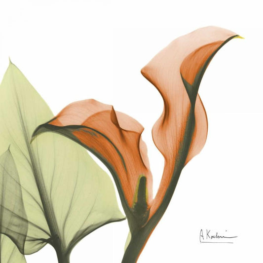 A Gift of Calla Lilies in Orange Black Ornate Wood Framed Art Print with Double Matting by Koetsier, Albert