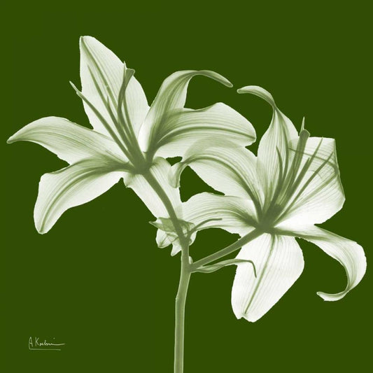 Twin Lilies on Green Black Ornate Wood Framed Art Print with Double Matting by Koetsier, Albert