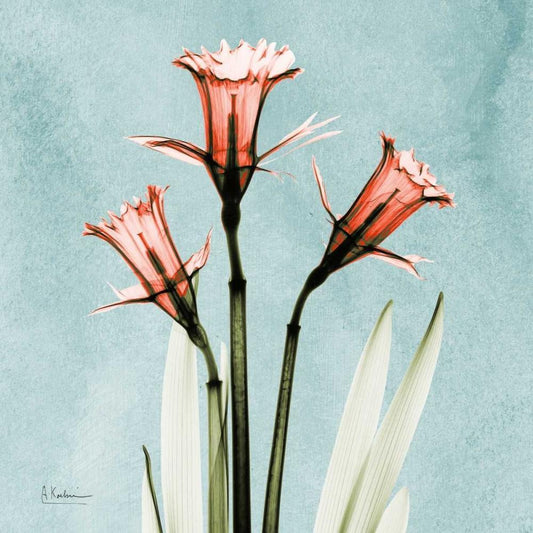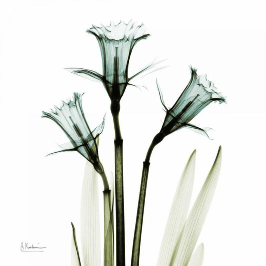 Three Daffodils in Green Black Ornate Wood Framed Art Print with Double Matting by Koetsier, Albert