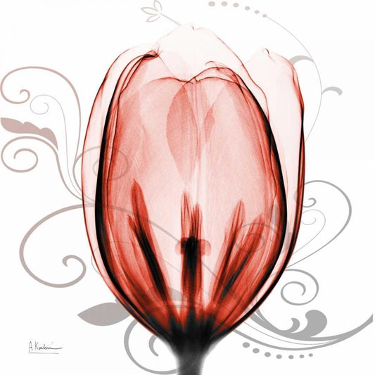 Happy Tulip in Red - Mon Amour Black Ornate Wood Framed Art Print with Double Matting by Koetsier, Albert