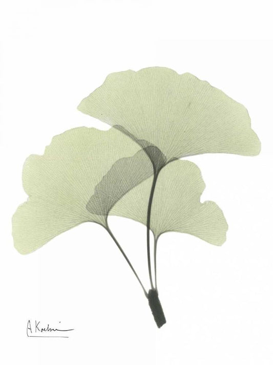 Gingko in Pale Green 2 Black Ornate Wood Framed Art Print with Double Matting by Koetsier, Albert