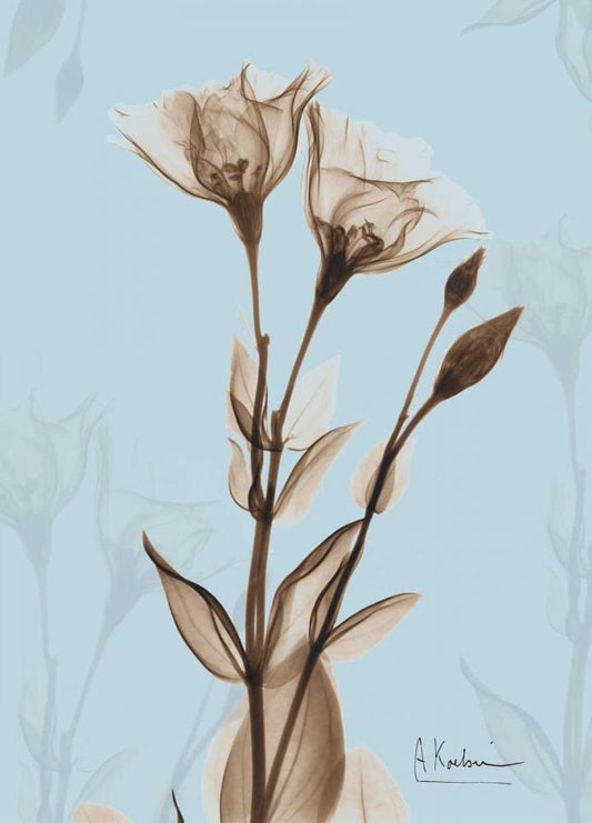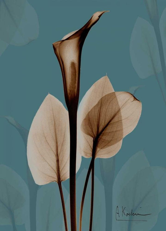 Calla Lily Brown on Blue 2 Black Ornate Wood Framed Art Print with Double Matting by Koetsier, Albert