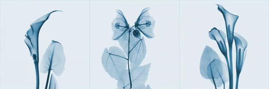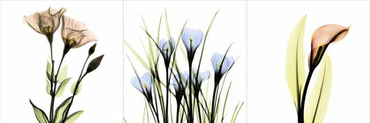 Lilies Triple in Blue Black Ornate Wood Framed Art Print with Double Matting by Koetsier, Albert