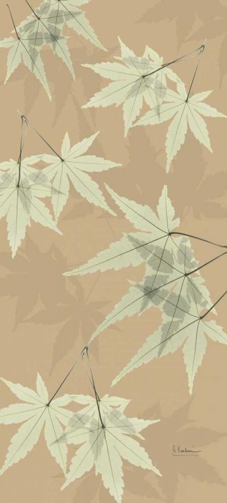 Leaves Tan on Beige Black Ornate Wood Framed Art Print with Double Matting by Koetsier, Albert