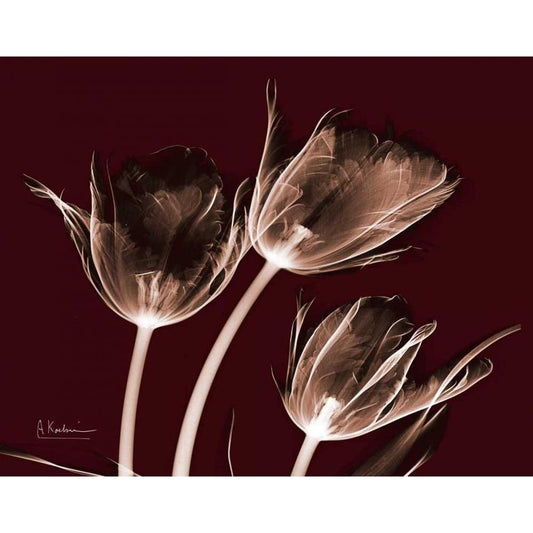 Crimson Tulips Black Modern Wood Framed Art Print with Double Matting by Koetsier, Albert