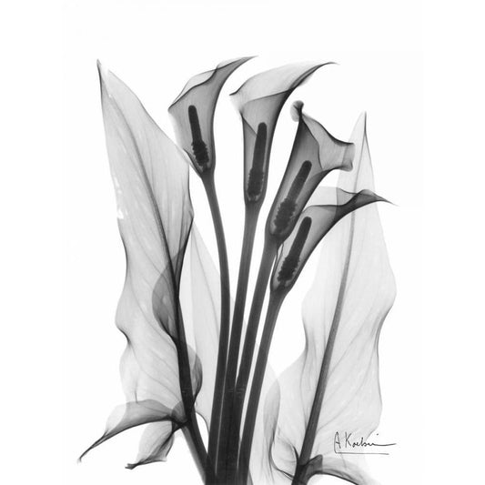 Calla Lily Quad in BandW Black Modern Wood Framed Art Print with Double Matting by Koetsier, Albert