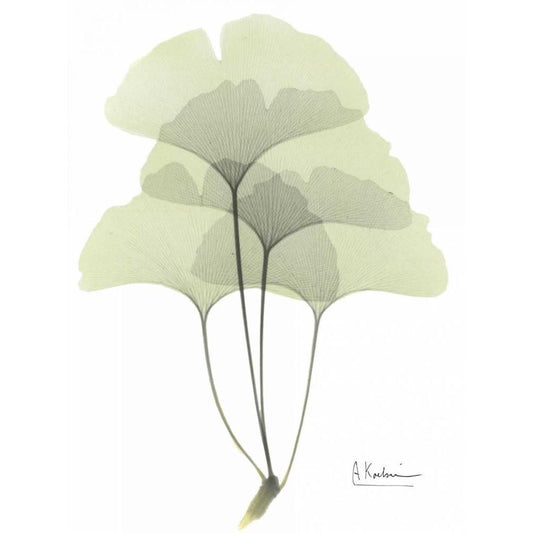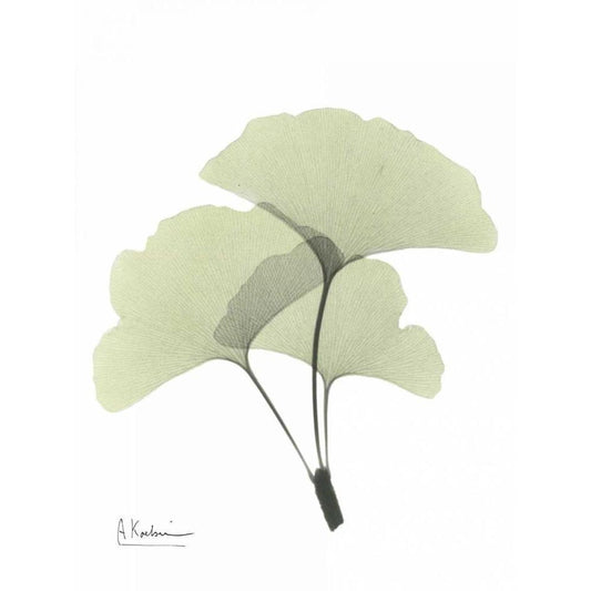 Gingko in Pale Green 2 Black Modern Wood Framed Art Print with Double Matting by Koetsier, Albert