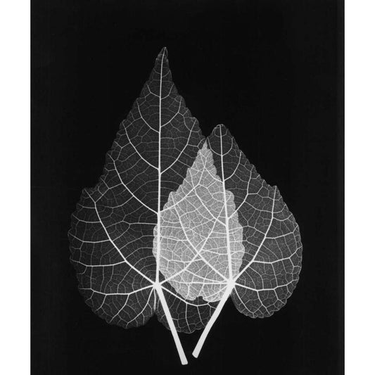 Triple Leaf Close Up on Black Black Modern Wood Framed Art Print with Double Matting by Koetsier, Albert