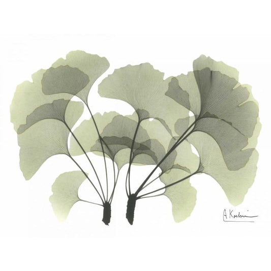 Gingko in Pale Green Black Modern Wood Framed Art Print with Double Matting by Koetsier, Albert