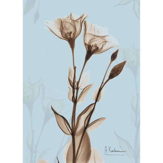 Tulips Brown on Blue Black Modern Wood Framed Art Print with Double Matting by Koetsier, Albert