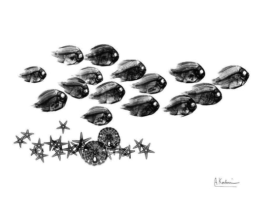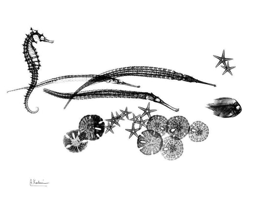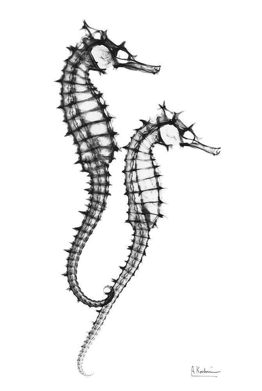 Seahorse Twins on Black White Modern Wood Framed Art Print with Double Matting by Koetsier, Albert